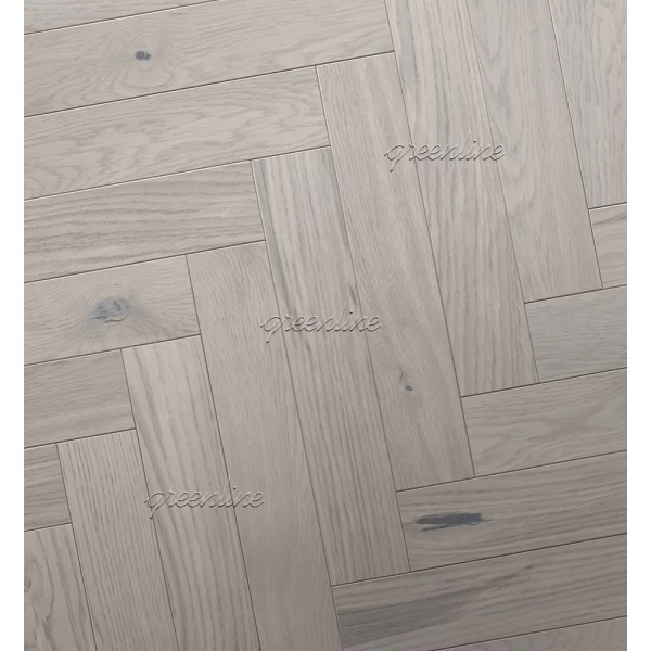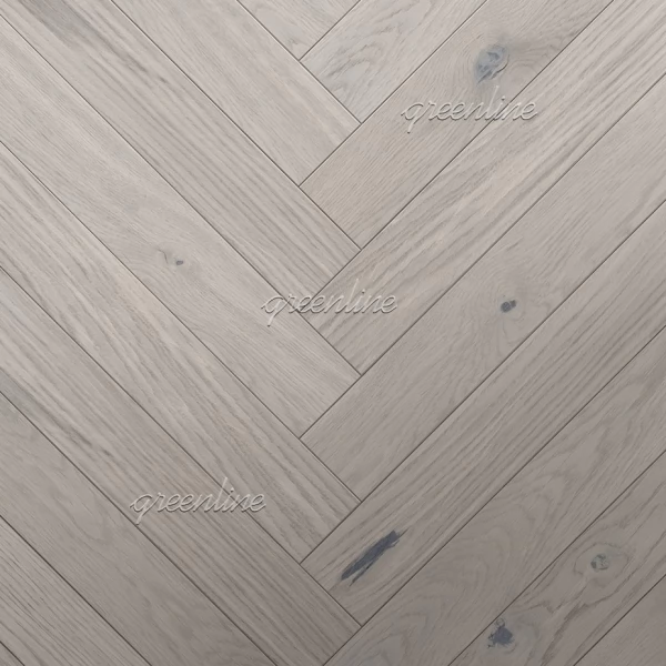 Инженерная доска GreenLine Брианца Вилладж (Страна производства Россия) из коллекции «Английская елка Village» имеет серый рисунок, верхний слой сделан из благородного дерева дуб с селекцией «кантри».