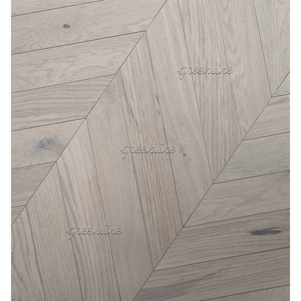 Инженерная доска GreenLine Брианца Вилладж (Страна производства Россия) из коллекции «Французская елка Village» имеет серый рисунок, верхний слой сделан из благородного дерева дуб с селекцией «кантри».