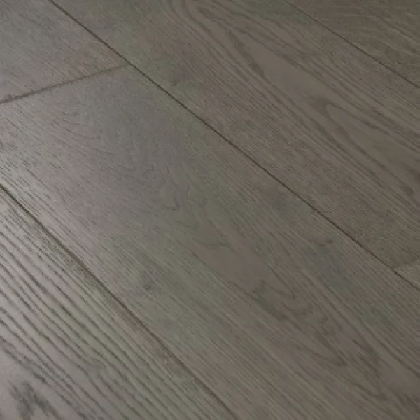 Инженерная доска Royal Parket Дуб Рустик Гранит (Страна производства Россия) из коллекции «Click 14 мм» имеет серый однополосный рисунок, верхний слой сделан из благородного дерева дуб с селекцией «рустик».