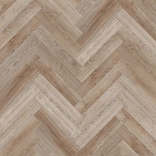 Каменный ламинат SPC CronaFloor, цвет «Дуб Лилль» из коллекции «Herringbone», имеет светло-коричневый однополосный рисунок под дуб и 33 класс нагрузки.