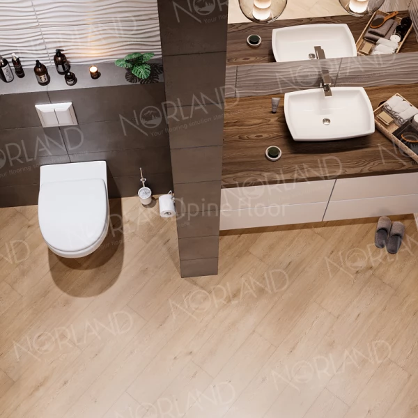 Каменный ламинат SPC Norland, цвет «Dor» из коллекции «Sigrid Plus», имеет натуральный однополосный рисунок под дуб и 43 класс нагрузки.