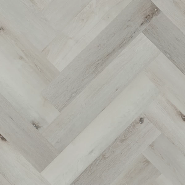 Описание Кварцевый ламинат SPC Fargo Parquet Herringbone (Классическая елка) Дуб Снежный 33-DL1601