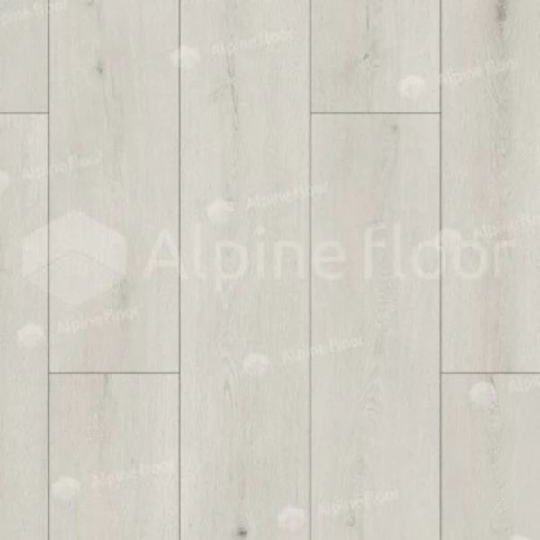 Ламинат Alpine Floor, цвет «Дуб Паола» из коллекции «Aura», имеет светло-серый однополосный рисунок под дуб и 33 класс нагрузки.