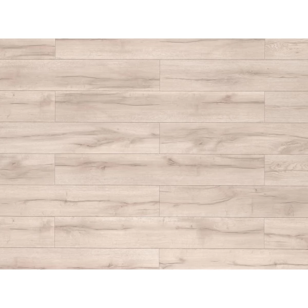 Ламинат Egger, цвет «Дуб Гирлевик бежевый» из коллекции «2023 PRO Laminate Classic 32 класс 8 мм с фаской (Россия)», имеет серо-бежевый однополосный рисунок под дуб и 32 класс нагрузки.