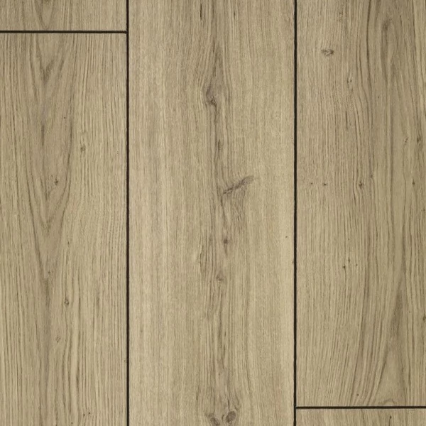 Ламинат Ever, цвет «Дуб Падуа серый» из коллекции «Sense», имеет коричневый однополосный рисунок под дуб и 34 класс нагрузки.
