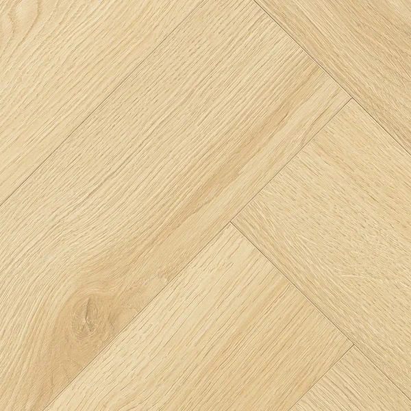 Ламинат Firstfloor, цвет «Дуб Зефир (Zefir oak)» из коллекции «Черный бархат (Supreme black core) Английская елка», имеет бежевый английская елка рисунок под дуб и 33 класс нагрузки.