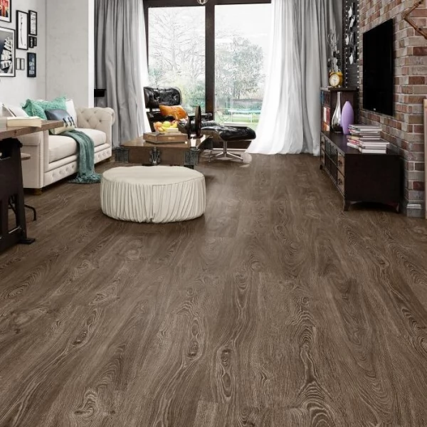Ламинат Floorwood, цвет «Дуб Хэмонд» из коллекции «Phantom», имеет коричневый однополосный рисунок под дуб и 34 класс нагрузки.