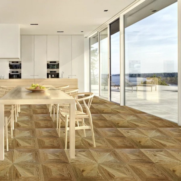 Ламинат Floorwood производства Китай без фаски, что предотвращает плиту напольного покрытия от повреждений на стыках.