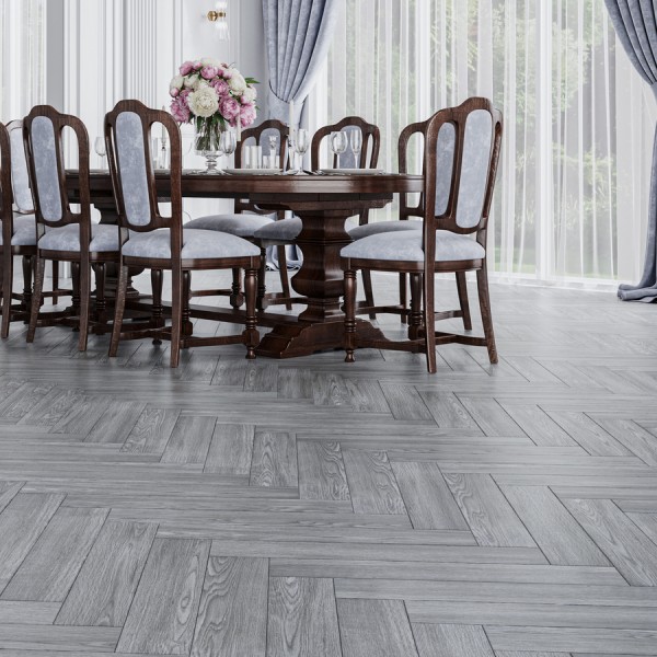 Ламинат Joss Beaumont, цвет «Дарк» из коллекции «Veritas», имеет серый однополосный рисунок под дуб и 33 класс нагрузки.