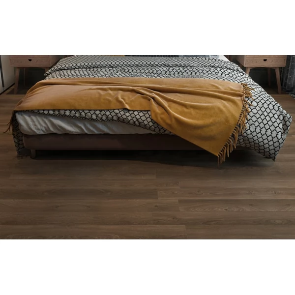Ламинат Joss Beaumont, цвет «Профитроль» из коллекции «Liberte», имеет коричневый однополосный рисунок под дуб и 33 класс нагрузки.
