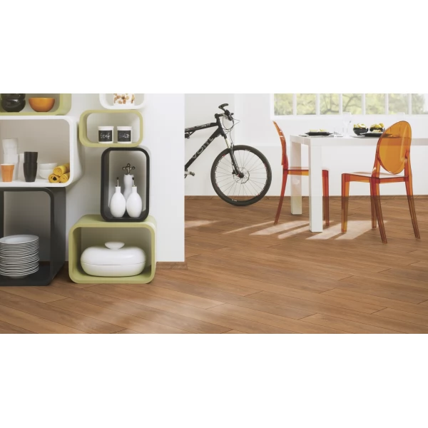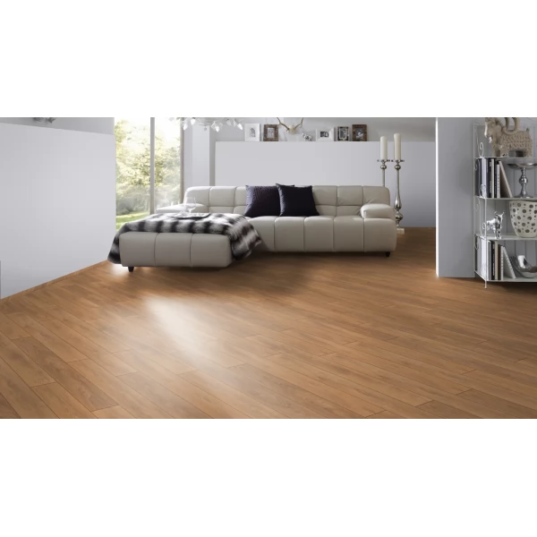 Плиты напольного покрытия размером 1285 x 192 x 8 мм и толщиной 8 мм легко укладывается и отлично подходят для теплого пола. Замковый тип соединения обеспечивает надежное сцепление.