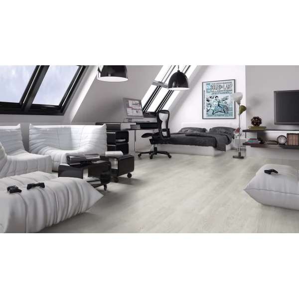 Ламинат Kronopol, цвет «Cleopatra Oak» из коллекции «Milo Platinium», имеет беленый однополосный рисунок под дуб и 32 класс нагрузки.