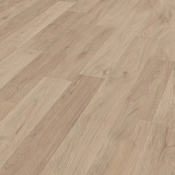 Ламинат Kronospan, цвет «Дуб Studio» из коллекции «Kronofix Classic», имеет бежевый двухполосный рисунок под дуб и 31 класс нагрузки.