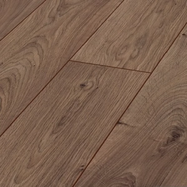 Ламинат Kronotex, цвет «Дуб Атлас Кофейный» из коллекции «Super Solid», имеет коричневый однополосный рисунок под дуб и 33 класс нагрузки.