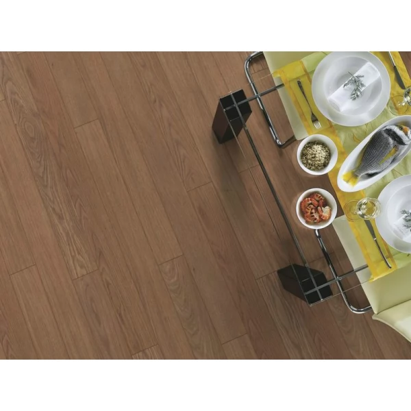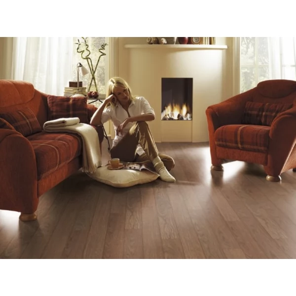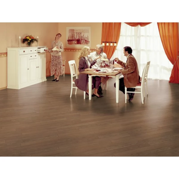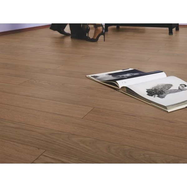 Ламинат Kronotex, цвет «Дуб Марсель» из коллекции «Amazone», имеет коричневый однополосный рисунок под дуб и 33 класс нагрузки.