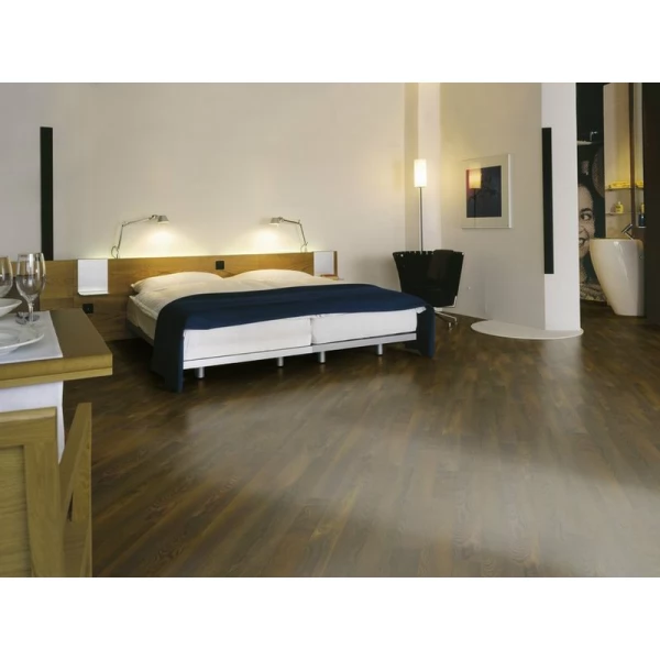 Ламинат Kronotex, цвет «Дуб Парижский» из коллекции «Amazone», имеет коричневый однополосный рисунок под дуб и 33 класс нагрузки.