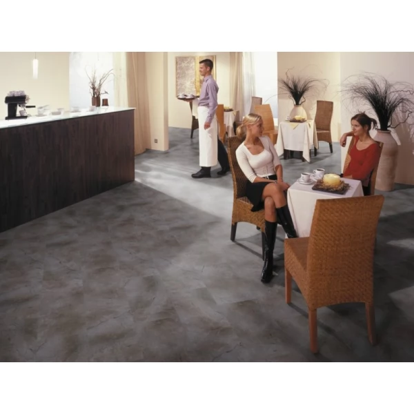 Ламинат Kronotex, цвет «Парос» из коллекции «Mega», имеет серый под плитку рисунок под и 32 класс нагрузки.