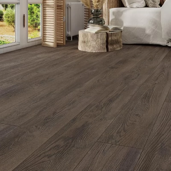 Ламинат La Moena, цвет «Дуб Тиволи» из коллекции «Bellamonte», имеет коричневый однополосный рисунок под дуб и 33 класс нагрузки.