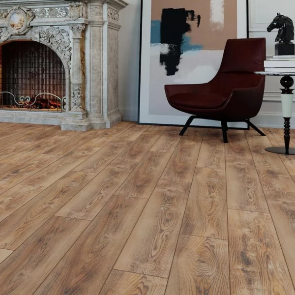 Ламинат La Moena производства Россия с фаской, что предотвращает плиту напольного покрытия от повреждений на стыках.