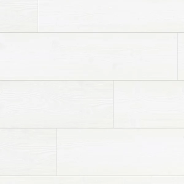 Ламинат Quick-Step, цвет «Белоснежный (Доска белая)» из коллекции «Impressive», имеет белый однополосный рисунок под дуб и 32 класс нагрузки.