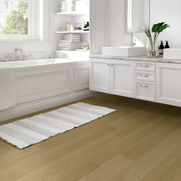 Плиты напольного покрытия размером 1380 мм х 190 мм х 8 мм и толщиной 8 мм легко укладывается и отлично подходят для теплого пола. Замковый тип соединения обеспечивает надежное сцепление.