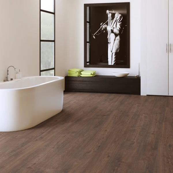 Главное достоинство такого покрытия — его устойчивость к повреждениям. Современные технологии позволяют создать уникальное покрытие, которое защищает ламинат от появления царапин, трещин и сколов. Еще одно преимущество — влагоустойчивость, позволяющее использовать материал даже для укладки в ванной.