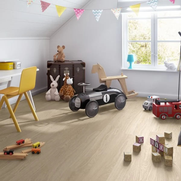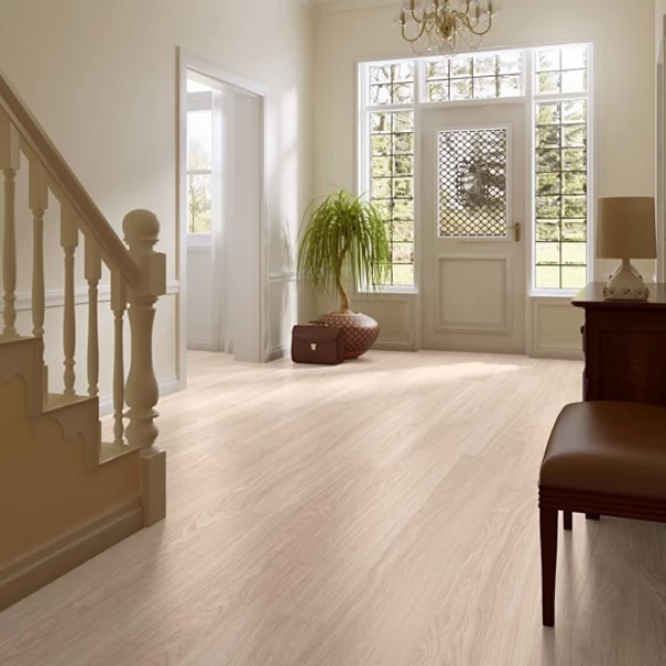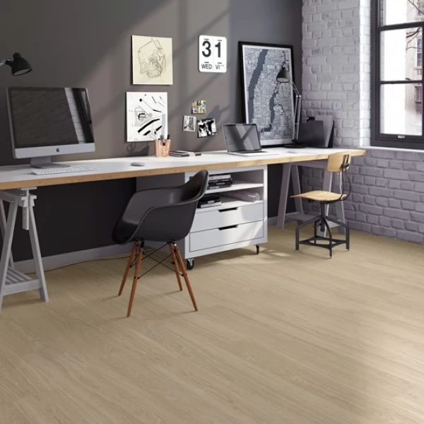 Данная модель напольного покрытия от компании Quick-Step обладает нежным светло-коричневым оттенком. Такая расцветка позволяет применять ламинат коллекции Eligna Wide new Дуб натуральный промасленный с разнообразными дизайнерскими решениями, так как этот материал является универсальным, согласно отзывам, и поэтому подойдет под любой стиль оформления помещения.