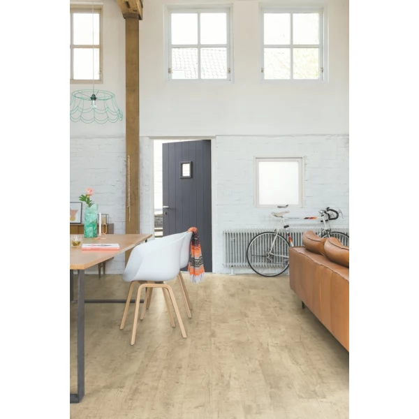 Ламинат Quick-Step, цвет «Дуб почтенный бежевый промасленный» из коллекции «Perspective», имеет однополосный рисунок под дуб и 32 класс нагрузки.