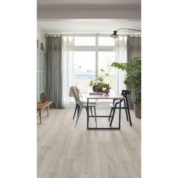 Капитальный ремонт квартиры или дома не обходится без замены напольного покрытия. Этот этап определяет дальнейший комфорт жилищных условий, практичность, а также стиль и дизайн интерьера. Все эти факторы совмещает в себе ламинат Quick-Step Дуб Серый брашированный коллекция Signature SIG4765 от бельгийского бренда.