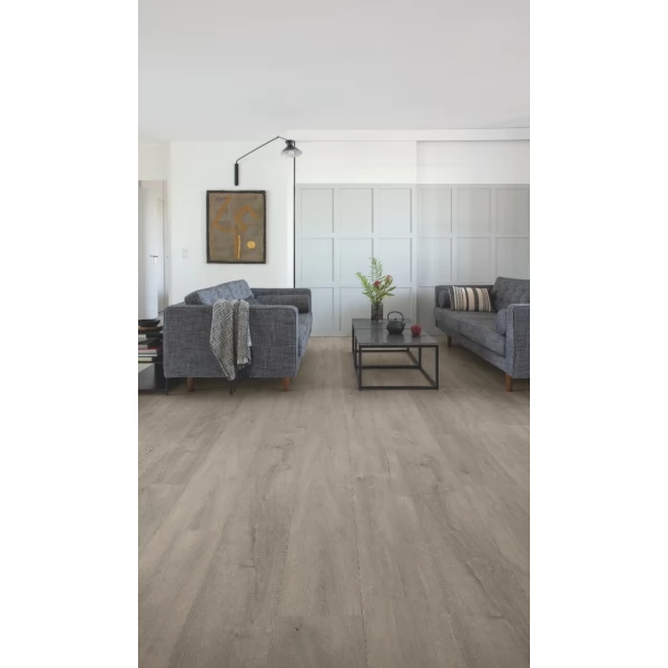 Все эти функции вмещает в себе ламинат Quick-Step Дуб Серый патина коллекция Signature SIG4752. Такое покрытие относится к 32 классу нагрузки. Оно предназначено для использования в стандартных жилых помещениях. Срок эксплуатации такого ламината до 20 лет.