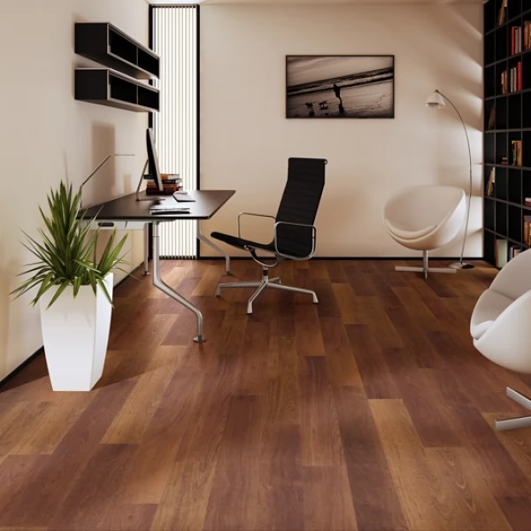 Представленная сегодня вашему вниманию модель напольного покрытия отлично подойдет для помещений, оформленных в строгом стиле интерьера благодаря своему благородному насыщенному темному оттенку древесины. Ламинат Quick-Step Eligna Мербау планк несомненно стоит своих денег, при этом цена, относительно других продуктов на рынке, не так уж и высока.