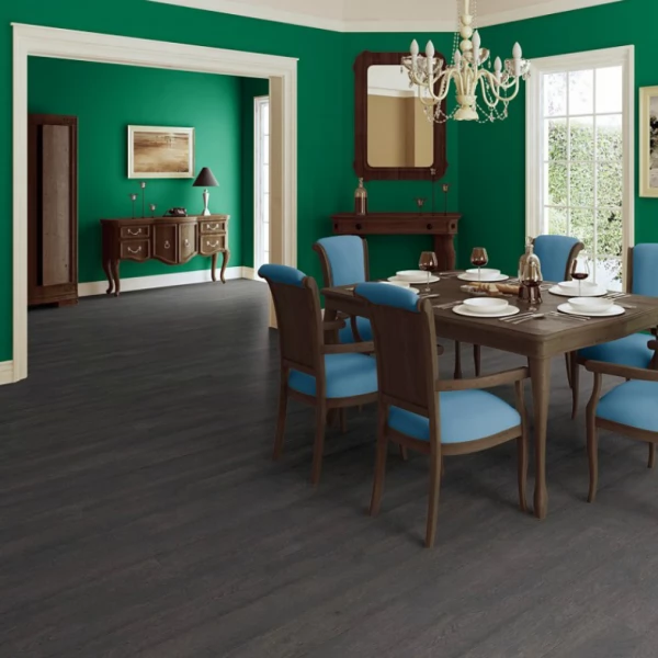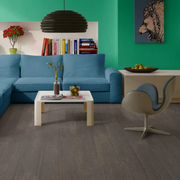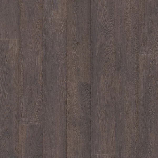 Ламинат Quick-Step, цвет «дуб темный старинный» из коллекции «Elite», имеет коричневый однополосный рисунок под дуб и 32 класс нагрузки.