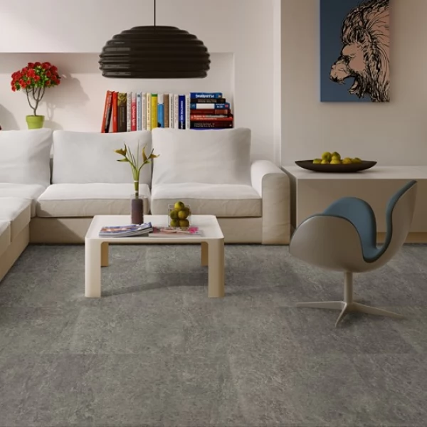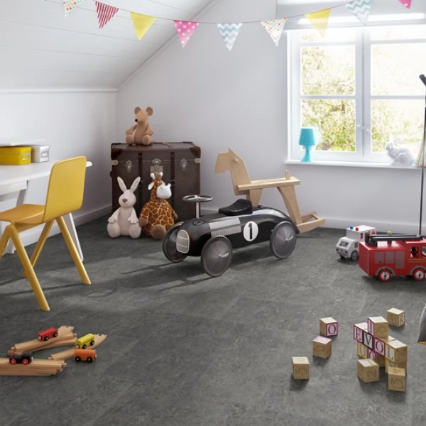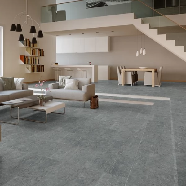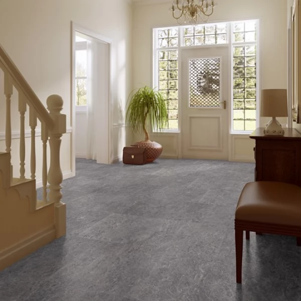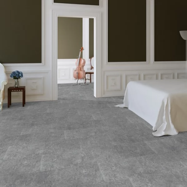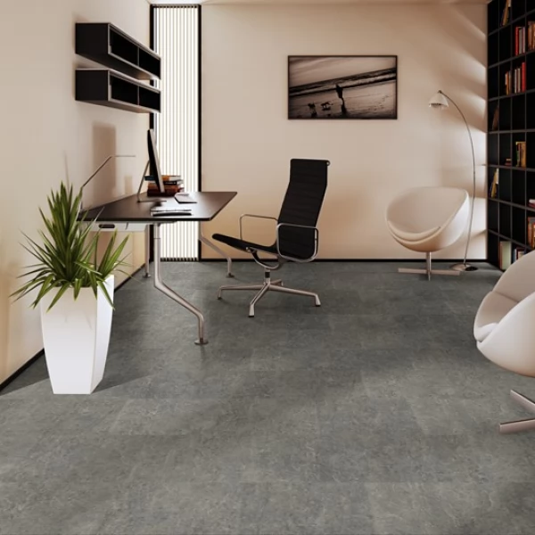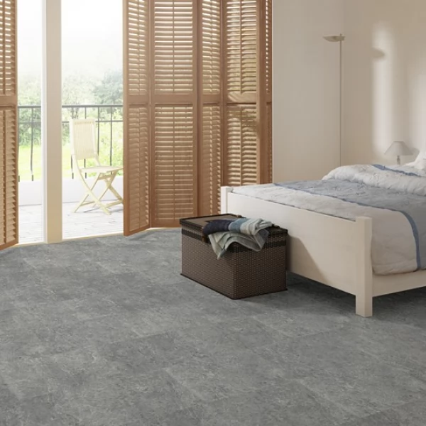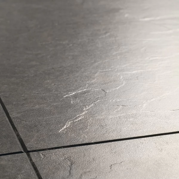 Ламинат Quick-Step, цвет «тёмный сланец» из коллекции «Exquisa», имеет серый под камень рисунок под и 32 класс нагрузки.
