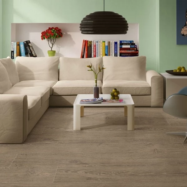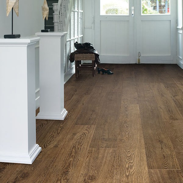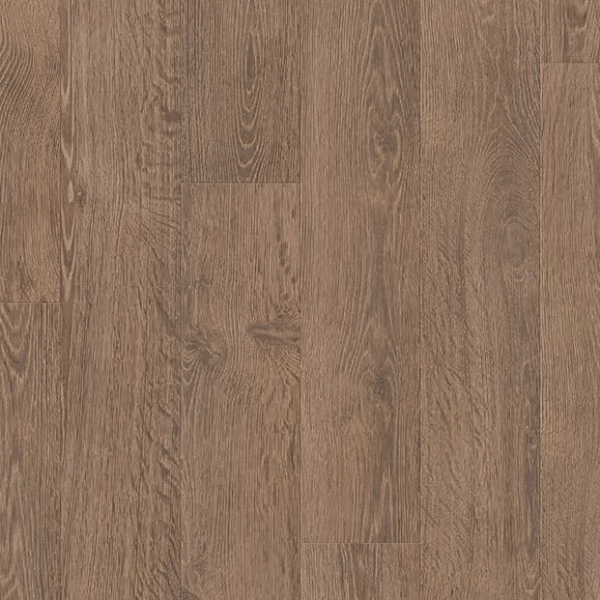 Ламинат Quick-Step, цвет «натуральный винтажный дуб» из коллекции «Largo», имеет коричневый однополосный рисунок под дуб и 32 класс нагрузки.