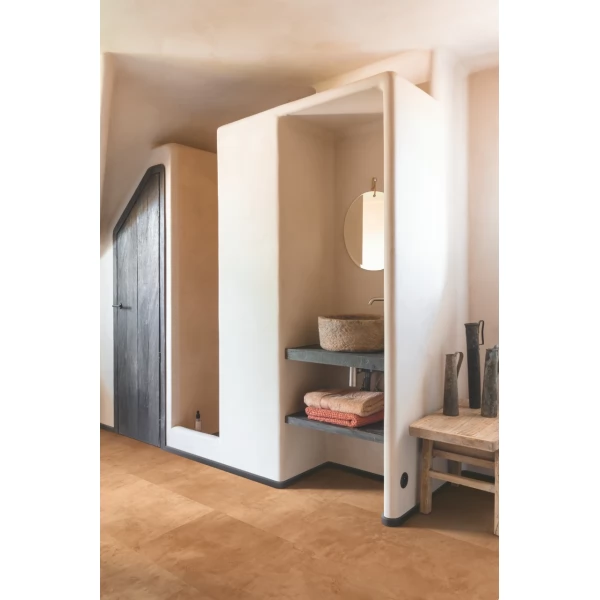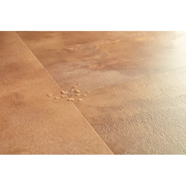 Ламинат Quick-Step, цвет «Терракота» из коллекции «Muse Ultra», имеет коричневый под камень рисунок под под камень и 33 класс нагрузки.