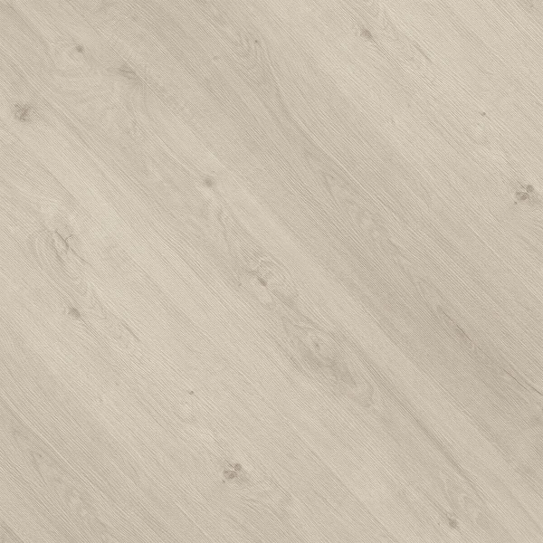Ламинат Ritter, цвет «Дуб айвори» из коллекции «Organic 33 / 12 мм», имеет светло-серый однополосный рисунок под дуб и 33 класс нагрузки.