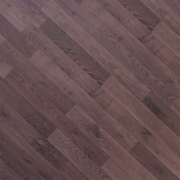 Ламинат Ritter, цвет «Дуб паркетный» из коллекции «Organic 33 / 12 мм», имеет темный однополосный рисунок под дуб и 33 класс нагрузки.