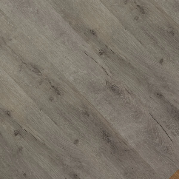 Ламинат Ritter, цвет «Дуб средневековый» из коллекции «Organic 33 / 12 мм», имеет темно-серый однополосный рисунок под дуб и 33 класс нагрузки.