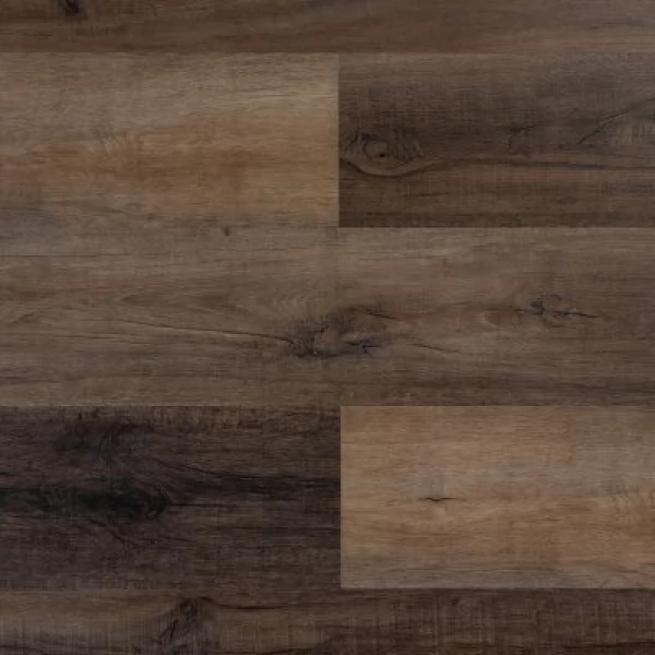 Каменный ламинат SPC Aberhof, цвет «Feige» из коллекции «Alfa», имеет коричневый однополосный рисунок под дуб и 31 класс нагрузки.
