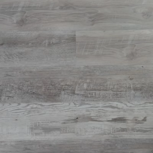 Каменный ламинат SPC Aberhof, цвет «Aprikose» из коллекции «Alfa», имеет серый однополосный рисунок под дуб и 31 класс нагрузки.
