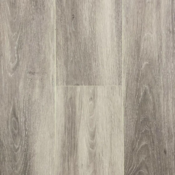 Каменный ламинат SPC Dolce Flooring, цвет «Дуб Фабриция» из коллекции «Super Matte», имеет серый однополосный рисунок под и 43 класс нагрузки.