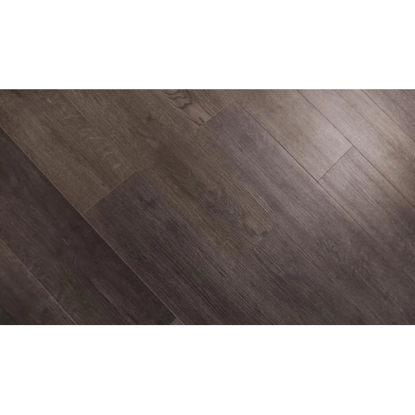 Каменный ламинат SPC MaxWood, цвет «Дуб Шираз» из коллекции «AquaMax Bottega», имеет темно-коричневый однополосный рисунок под дуб и 43 класс нагрузки.