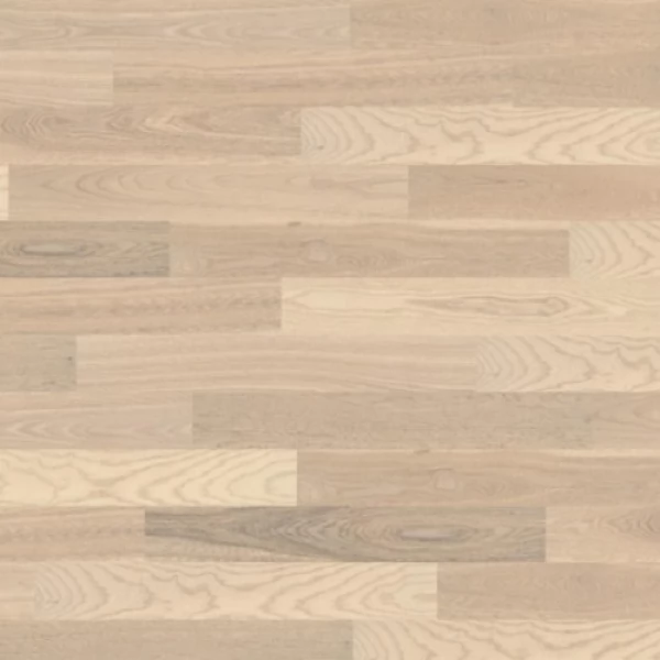 Паркетная доска Karelia «ASH STORY 138 WHITE ORCHID» (Страна производства Россия) из коллекции Essence имеет выбеленный однополосный рисунок, верхний слой сделан из благородного дерева ясень с селекцией «натур».