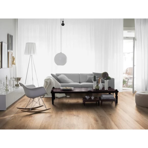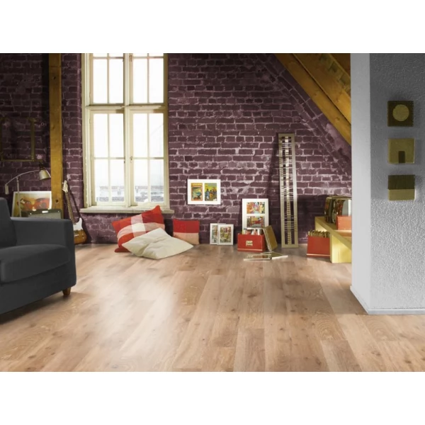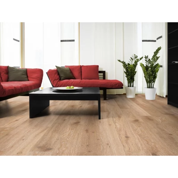 Паркетная доска легко укладывается и отлично подходит для помещений с теплым полом. Замковый тип соединения без фаски обеспечивает надежное сцепление.