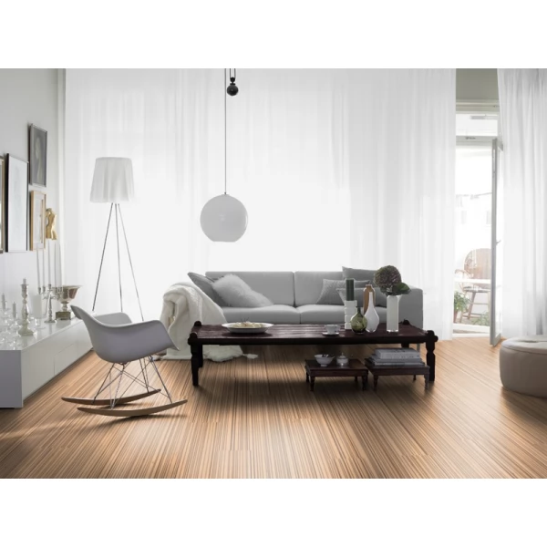 Паркетная доска легко укладывается и отлично подходит для помещений с теплым полом. Клеевой тип соединения без фаски обеспечивает надежное сцепление.