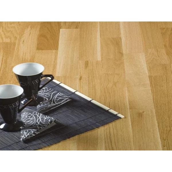 Паркетная доска легко укладывается и отлично подходит для помещений с теплым полом. Замковый тип соединения с фаской обеспечивает надежное сцепление.