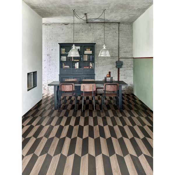 Описание ПВХ плитка Moduleo Moods Arrow Line 370 орнамент из планок формы Шеврон